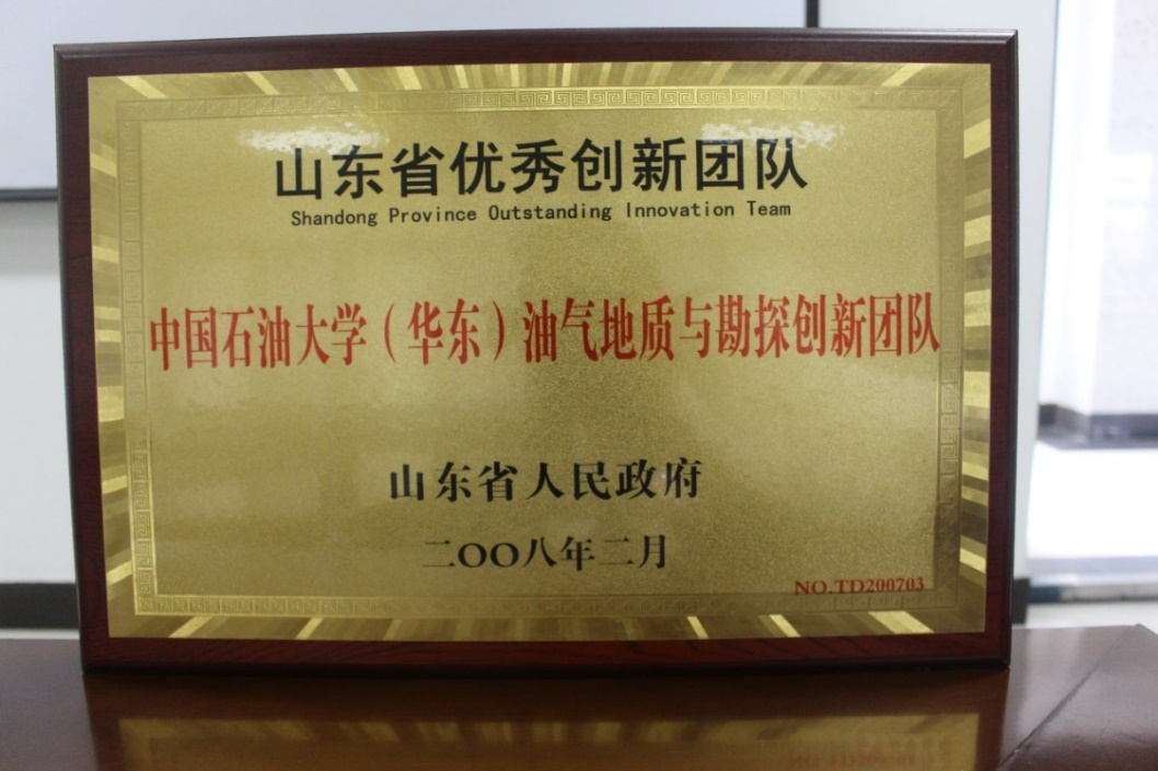 2008年2月,山东省委、省政府授予油气地质与勘探创新团队“山东省优秀创新团队”荣誉称号,并记集体一等功。这是我校第一个省级“优秀创新团队”。