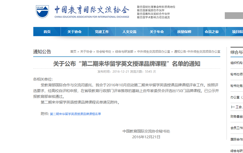 2016年12月,教育部公布第二期来华留学英文授课品牌课程评选结果。我院张世奇教授主持申报的“油田开发地质学”课程入选。
