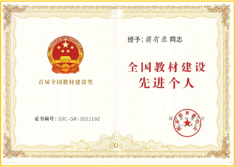 2021年10月,教育部公布首届全国教材建设奖获奖名单,我院蒋有录教授获“全国教材建设先进个人”称号。
