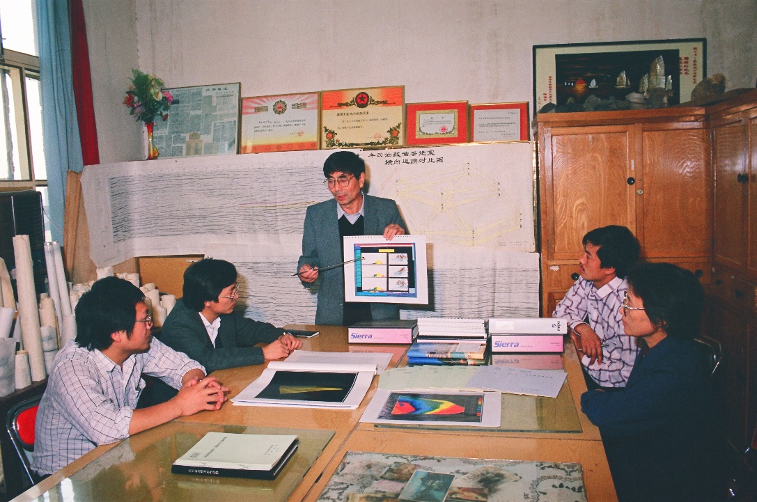 1997年,资源系应用地球物理软件工程实验室李洪奇副教授(右一)与斯伦贝谢公司合作完成的“测井资料沉积微相人机联作解释软件”开发合同是我国石油行业与斯伦贝谢公司合作的第一个软件开发合同,同时也是我校正式签订的第一个国际合作项目。