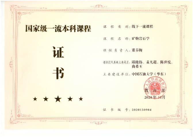 2020年11月,教育部公布首批国家级一流本科课程名单,我院地震勘探原理、矿物岩石学、油气地质与勘探、油田开发地质学等4门课程入选。