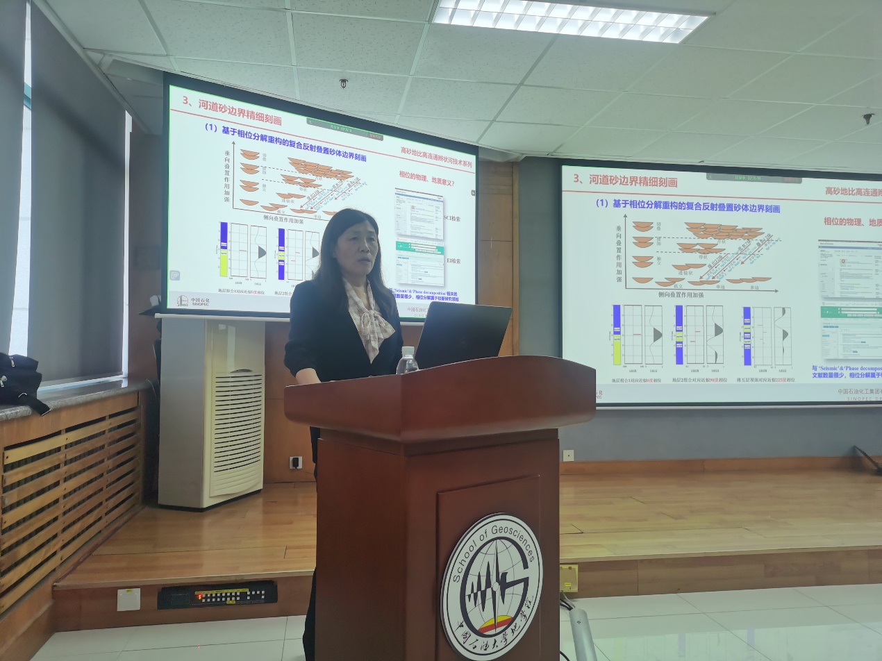 2023年10月14日下午,地学院、教育部"油气田发地质课程虚拟教研室"举办线上、线下行业前沿专题讲座,邀请了中国石化胜利油田勘探开发研究院首席专家罗红梅研究员作题为《新近系河道砂精细勘探技术与实践》的行业前沿专题讲座,资源系部分教师、地学院地质资源与地质工程博士研究生、硕士研究生,以及来自全国十余所高校科研院所150余人参加了线上、线下会议,教育部虚拟教研室主任、资源系主任张立强教授主持会议。