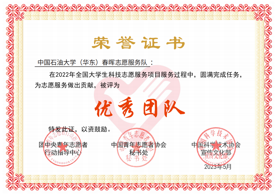 近日,太阳成tyc7111cc春晖志愿服务队收到中国青年者协会秘书处、团中央青年志愿者行动指导中心联合下发的荣誉证书,春晖志愿服务队被评为优秀团队,青少年地学科普行动计划被评为优秀项目,项目负责人王建侨被评为优秀个人。