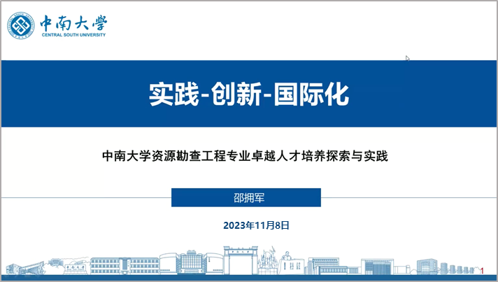 邵拥军教授从学校、学院、学科、专业历史沿革及师资力量、平台建设、学术贡献、招生情况等方面介绍了中南大学资源勘查工程专业基本情况。结合五个学科特色与方向系统总结了资源勘查工程专业 “一个中心,四条主线”卓越人才培养理念,以“立德树人”为中心,构建思政素质培养、工程实践能力培养、创新能力培养、国际化培养四条主线的人才培养举措,培养德智美体劳全面发展的社会主义建设者和接班人,取得了良好的初步成效,培养了具有强烈专业认同感、热心地质公益事业、创新能力强的卓越地质人才。聚焦国家重大需求以及国际前沿和行业发展方向(关键金属矿产资源成矿理论与勘查技术),建成以有色金属资源为主兼顾油气、环境领域的人才培养科学研究和社会服务的国内外知名专业。