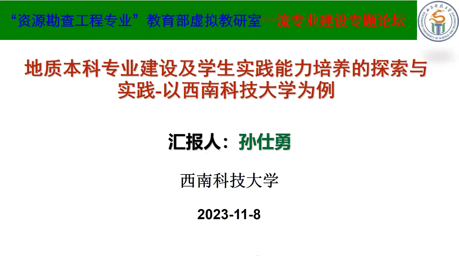 2023年11月8日,资源勘查工程专业教育部虚拟教研室举办了一流专业建设专题论坛。中南大学地球科学与信息物理学院党委书记邵拥军教授和西南科技大学环境与资源学院副院长孙仕勇教授应邀作了“资源勘查工程专业卓越人才培养探索与实践”和“地质本科专业建设及学生实践能力培养的探索与实践”的专题报告。专题论坛由中国地质大学(武汉)固体矿产勘查实验教学中心主任、教育部地质类专业教学指导委员会秘书长夏庆霖教授主持,来自中国石油大学、中国地质大学、中国矿业大学、西北大学、长安大学、贵州大学等十余所高校的60余名教师参加了专题论坛。