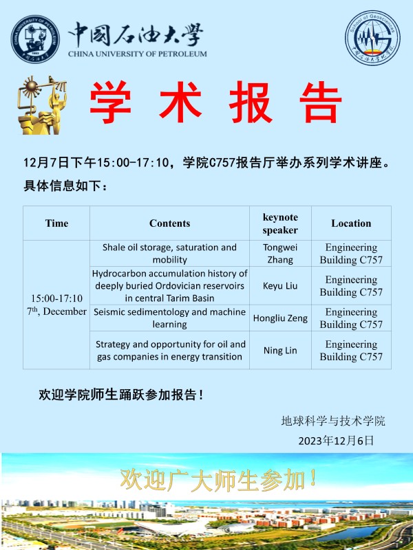 【学术报告】关于Dr.Tongwei Zhang等专家系列学术讲座的通知