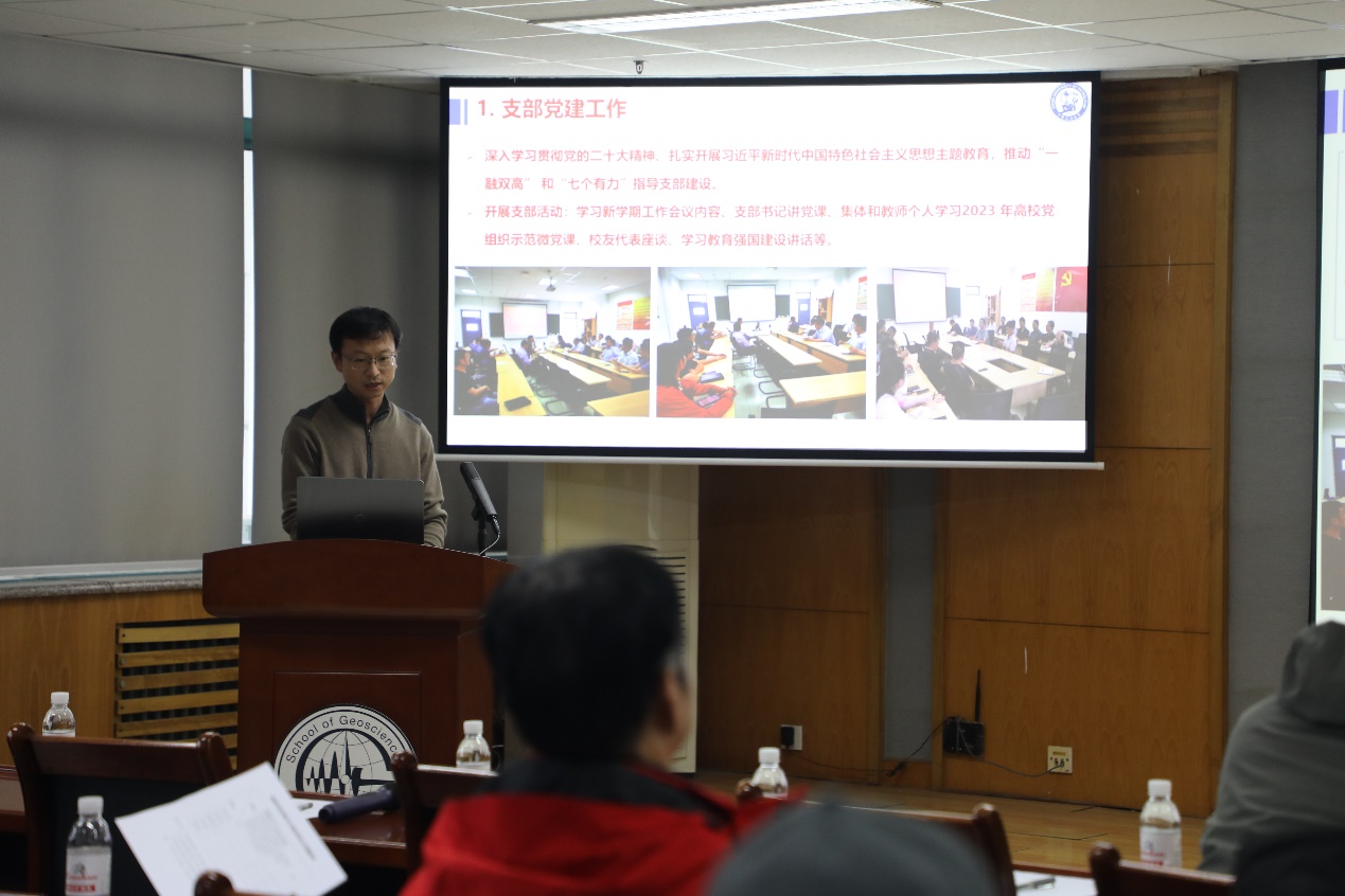 地球物理系党支部书记张凯汇报工作