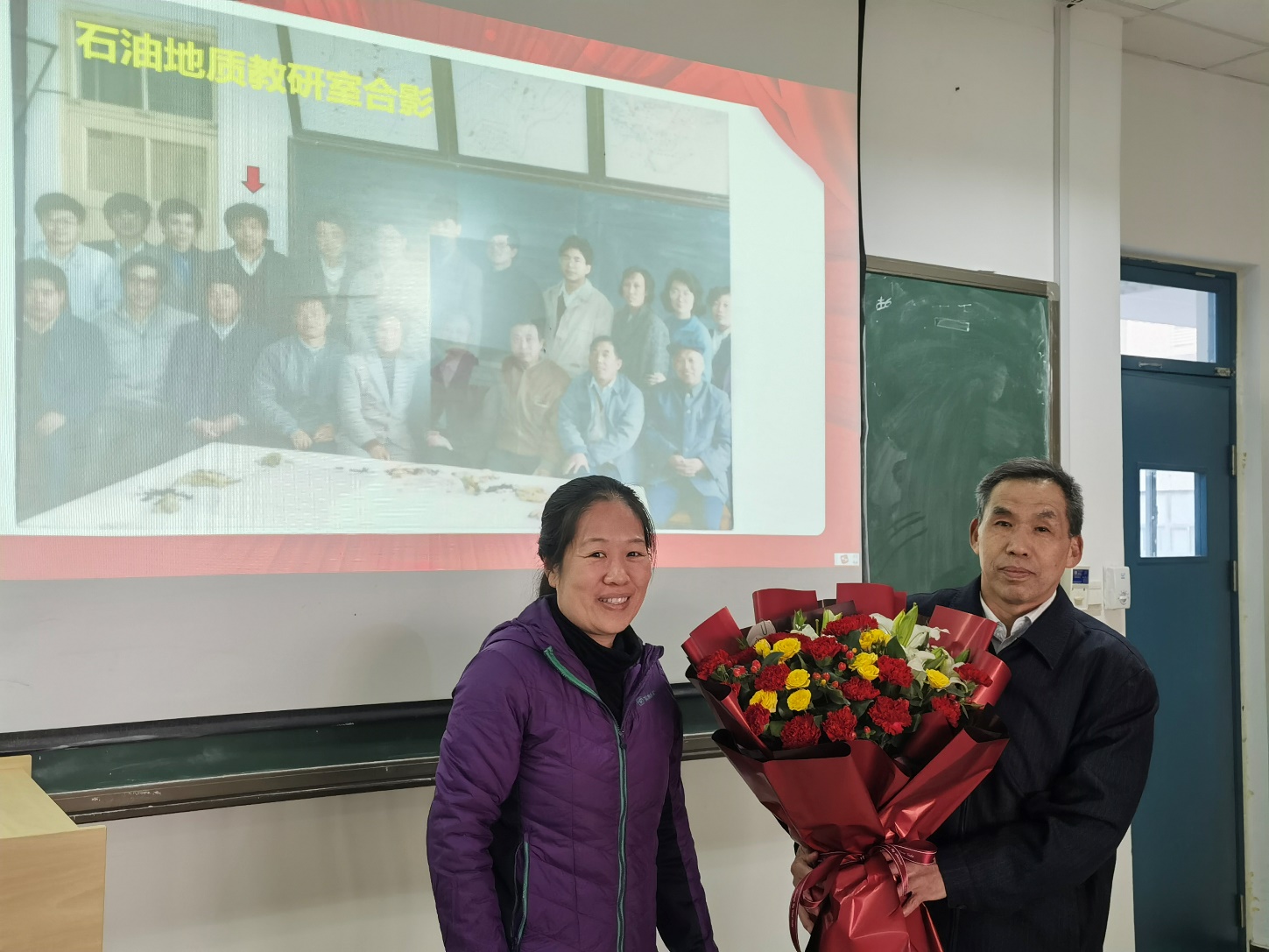 张军华教授感谢了国景星教授在学院教学和工会工作方面所付出的辛勤劳动和作出的重要贡献,并分享了国景星教授在参加教学研讨、运动会、合唱比赛活动时的宝贵照片,祝愿国老师的退休生活丰富多彩。