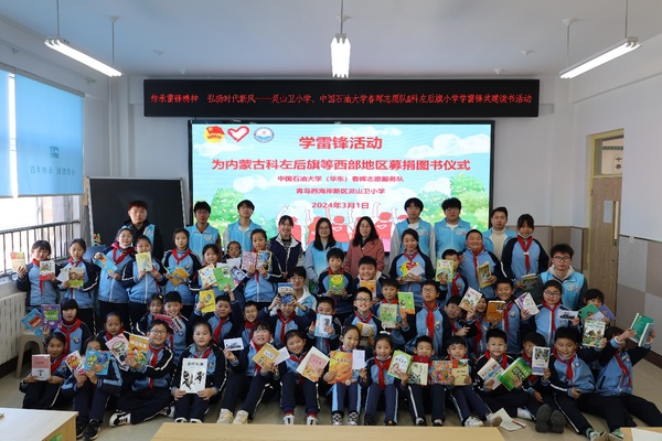 3月1日,为支持我校定点帮扶单位教育发展,春晖志愿服务队在灵山卫小学开展“传承雷锋精神,弘扬时代新风”学雷锋共建读书活动,为科左后旗甘旗卡镇中心学校募集各类图书2066本,并在中国石油大学明信片上为共建学校的同学们写下祝福语。甘旗卡镇中心学校校长杨建激动地表示,非常感谢春晖志愿服务队的热情奉献和灵山卫小学同学们的爱心捐赠,爱心图书将丰富中心学校同学们的学习生活,鼓励同学们更好地成长。