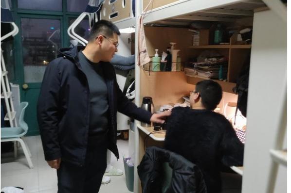 辅导员老师在宿舍进行卫生安全检查,与学生交流在校学习生活情况