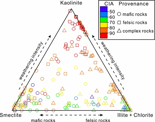 因此,研究团队对沉积物中粘土矿物的来源、分布、吸附机理和有机质富集效应等方面进行了系统的文献综述,得出以下几点认识:(1)物源和气候对沉积物中粘土矿物组成具有显著的影响;(2)蒙脱石因其较大的比表面积和阳离子交换能力而具有最强的吸附能力;(3)高分子量、芳香族和脂肪族化合物在矿物表面优先吸附;(4)水体的离子浓度和酸碱性可以显著影响粘土矿物吸附有机质的能力;(5)粘土矿物同沉积期营养元素供给强度会影响有机质生产力;(6)粘土矿物吸附作用保存有机质受水体氧化还原条件影响。基于此,从区域尺度物源和气候条件、盆地尺度水介质环境、微观尺度有机无机相互作用等方面,阐明了粘土矿物对有机质的选择性吸附机理及高效保存效应,为揭示有机质富集机理提供了新的视角。