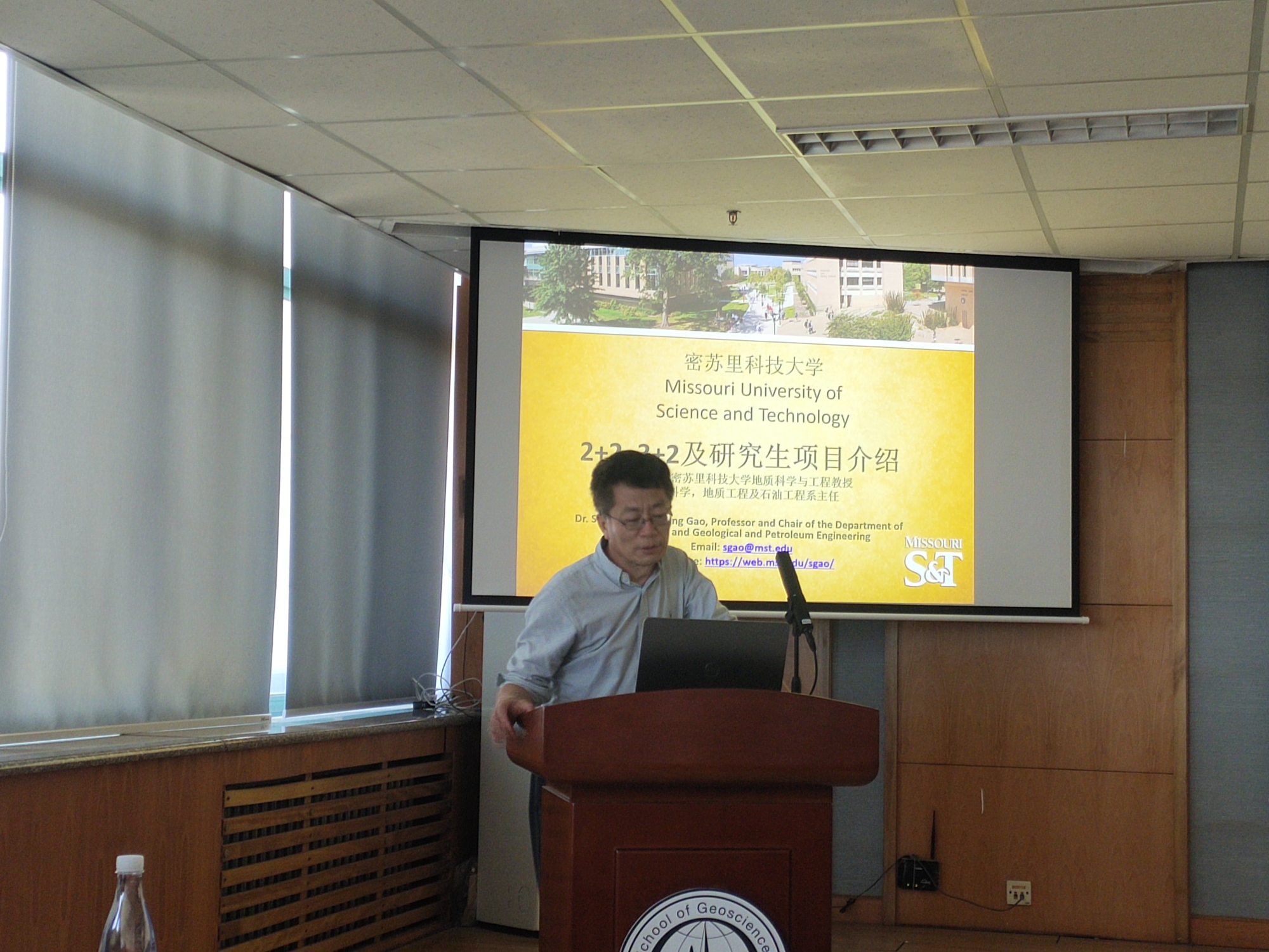 4月26日下午,密苏里科技大学高尚行教授受邀来学院举行学生国际培养项目宣讲,宋建国副教授主持宣讲活动。学校国际合作与交流处副处长俞继仙和孙路平老师以及学校相关师生参加宣讲。
