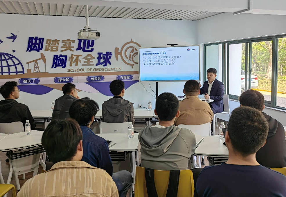 5月10日下午,学院在“勘未来”学生成长社区举办第三期“经纬论坛·青年问道”活动。本期活动邀请到了中海油田服务股份有限公司人力资源共享服务中心招聘及员工关系部经理李高兴作“本科生就业探讨”主题报告。活动由学院党委副书记郑珊珊主持,2021级辅导员以及三十余名青年学生现场聆听。