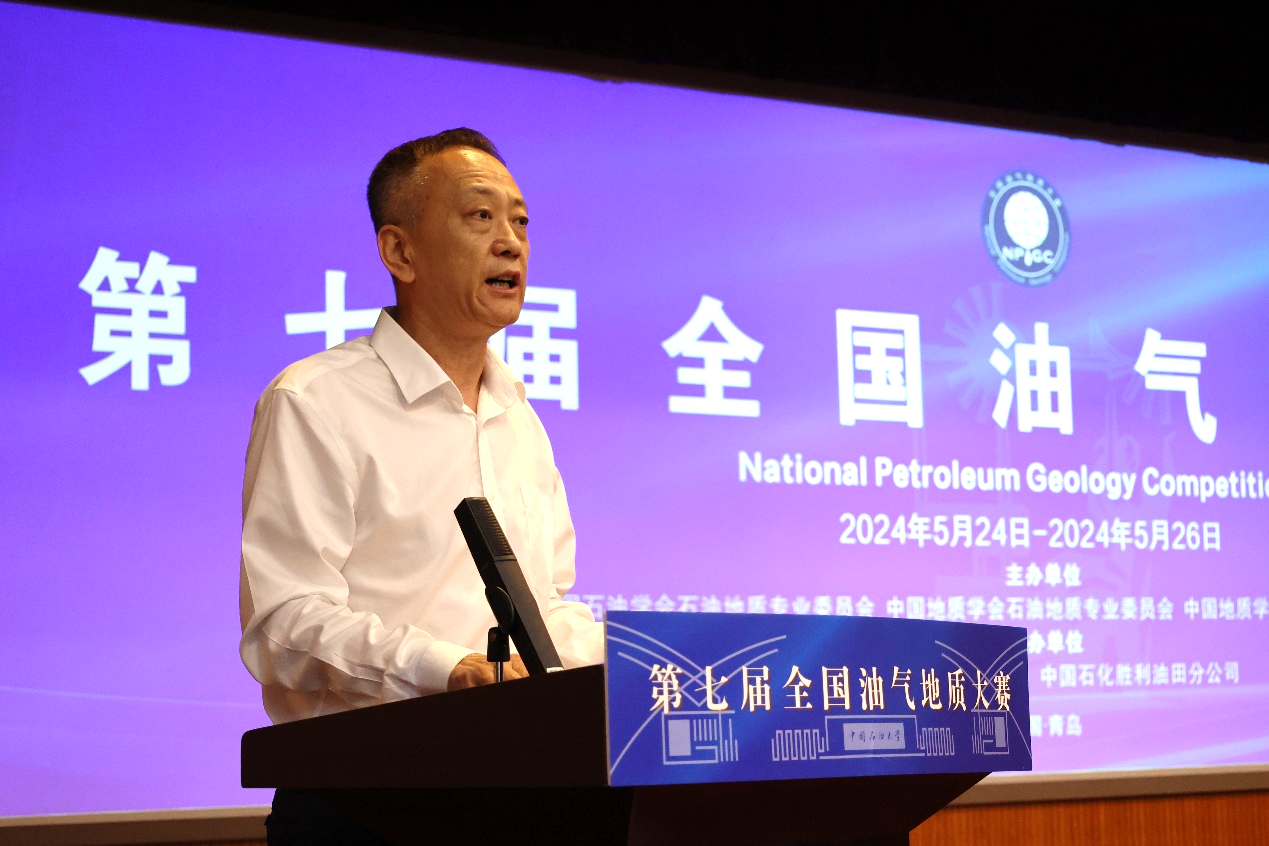 张广清代表本届大赛主办单位致辞。他表示,中国石油大学(北京)始终坚持把科技创新作为引领发展的第一动力,把服务国家重大战略需求作为最高追求,聚焦培养能源技术领军人才。近年来,依托全国油气地质大赛,学校坚持以赛促学、以赛促教,让学生能够在实践中不断提升创新思维、专业素养和综合素质,同时在此过程中检验教学质量和人才培养效果。相信本届大赛将继续构建一个全面、立体、有序的竞赛生态,为广大优秀学子提供更多展示自我、挑战自我、超越自我的机会,为各参赛高校、企业的人才培养注入新的活力和动力。