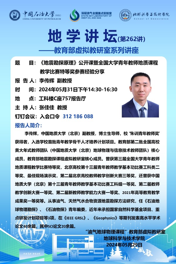 【地学讲坛第262讲】教育部虚拟教研室活动-《地震勘探原理》公开课暨全国大学青年教师地质课程教学比赛特等奖参赛经验分享