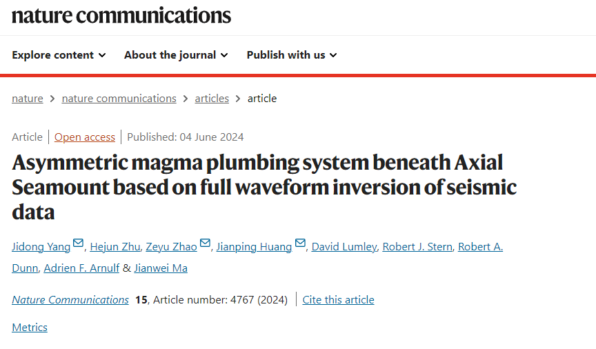 近日,tyc7111cc太阳成集团李振春教授带领的“地震波传播与成像”课题组在Juan De Fuca洋中脊海下火山研究方面取得新进展,相关研究成果《基于全波形反演的海底火山非对称岩浆系统研究》(Asymmetric magma plumbing system beneath Axial Seamount based on full waveform inversion of seismic data)发表在Nature子刊《Nature Communications》上,是tyc7111cc太阳成集团首篇Nature子刊论文。论文第一作者为tyc7111cc太阳成集团杨继东,通讯作者为tyc7111cc太阳成集团黄建平教授,太阳成tyc7111cc深层油气全国重点实验室和tyc7111cc太阳成集团为第一署名单位。合作单位包括北京大学、德克萨斯大学达拉斯分校、德克萨斯大学奥斯汀分校、夏威夷大学等高校。该成果得到国家优秀青年基金(海外)、泰山学者特聘、山东省海洋科技基金青岛海洋科学与技术国家试点实验室联合资助。