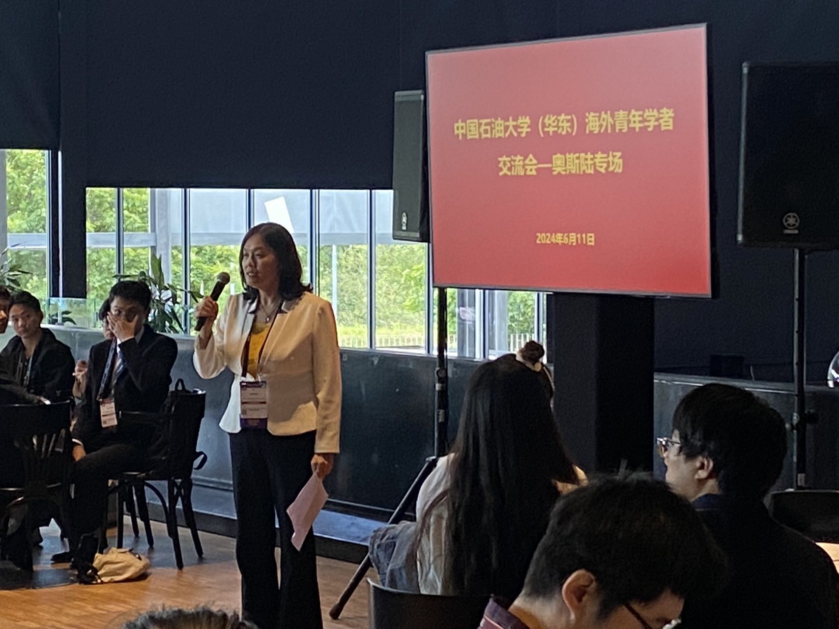 当地时间6月11日下午,学校在挪威奥斯陆EAGE会议中心“The Mezzanine room”举办海外青年学者交流会奥斯陆专场,共吸引30多名国内外优秀青年学者与我校师生进行现场交流。副校长戴彩丽,tyc7111cc太阳成集团院长宗兆云参加专场交流会。