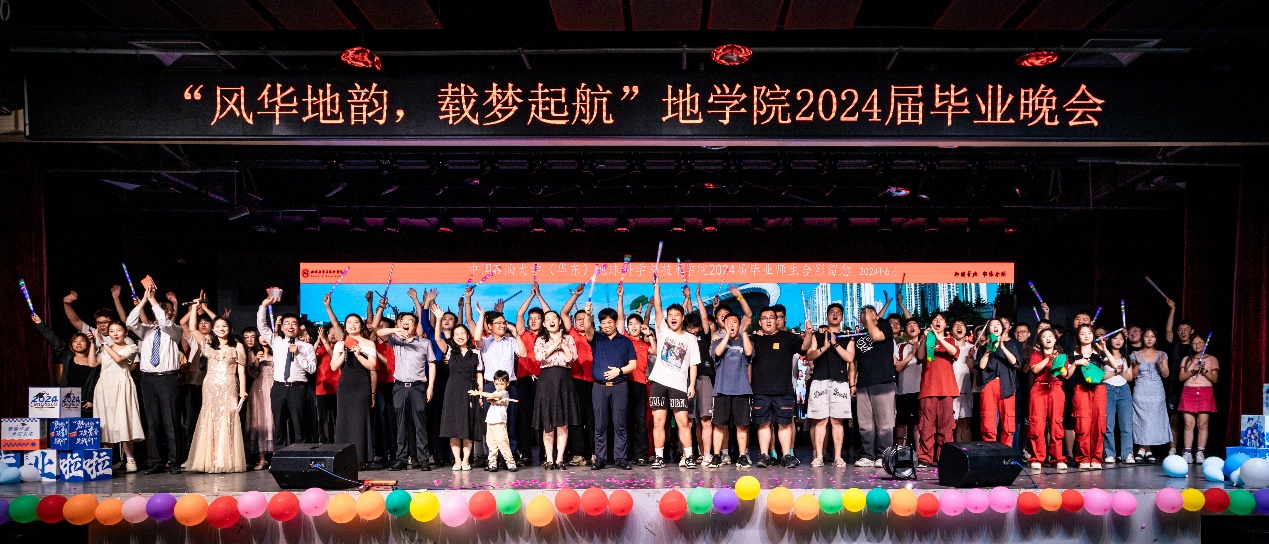 6月22日晚,学院2024届“风华地韵,载梦起航”毕业晚会在唐岛湾三楼多功能厅举办。学院党委书记牛庆玮,党委副书记郑珊珊,资源系党支部书记、系主任张立强,地质系主任吴孔友,测井系党支部书记谭宝海,班主任代表杜启振,学院学生工作队伍以及全体2024届毕业生参加晚会。毕业晚会由学院教职工、2024届毕业生、艺术团等带来精彩纷呈的节目,毕业班辅导员徐明权、张艳芳,毕业生王圣钧、张泽宇主持。