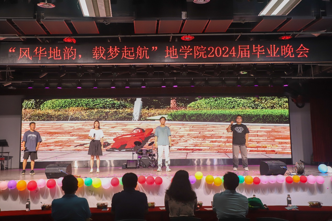 由零卡糖乐队带来的歌曲《永远都会在》在重刷吉他与轻拨细弦间、黑与白的琴键交错间、大鼓与小鼓含蓄交错敲击间将情感表达到极致;辅导员队伍带来的歌曲《启程》表达了对毕业生的深深不舍与希望,祝福毕业生们保持热爱,一路前行;地物2002班毕舒然、乔莎莎带来的器乐弹唱《那个夏天》清新而纯净,温暖而明媚,照亮了每位观众心中的角落。