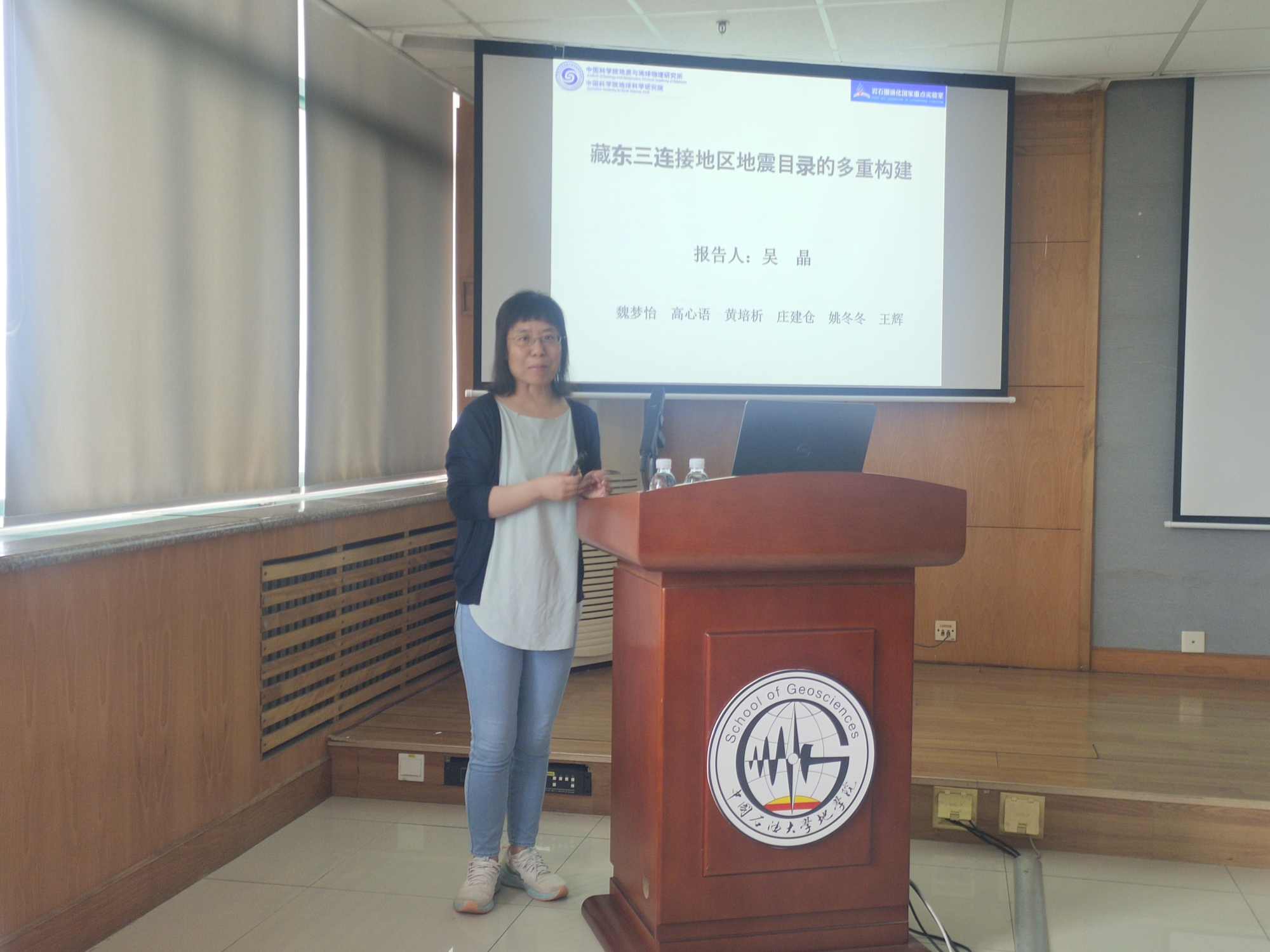 7月15日,中国科学院地质与地球物理研究所吴晶副研究员受邀来我院为研究生做“藏东三连接区地震目录多重构建”的学术报告,宋建国教授主持报告。