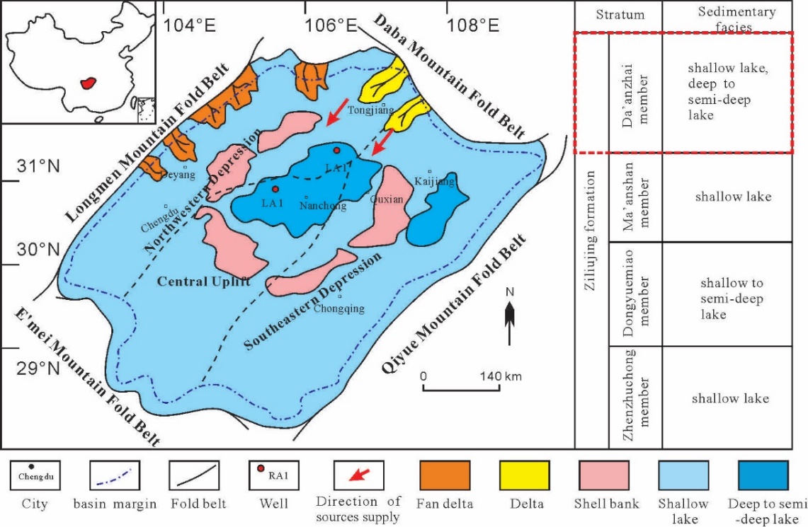 Figure.1 Paleogeographic map and Stratigraphic column of the Early Jurassic in the Sichuan Basin, and location of the cored wells.
