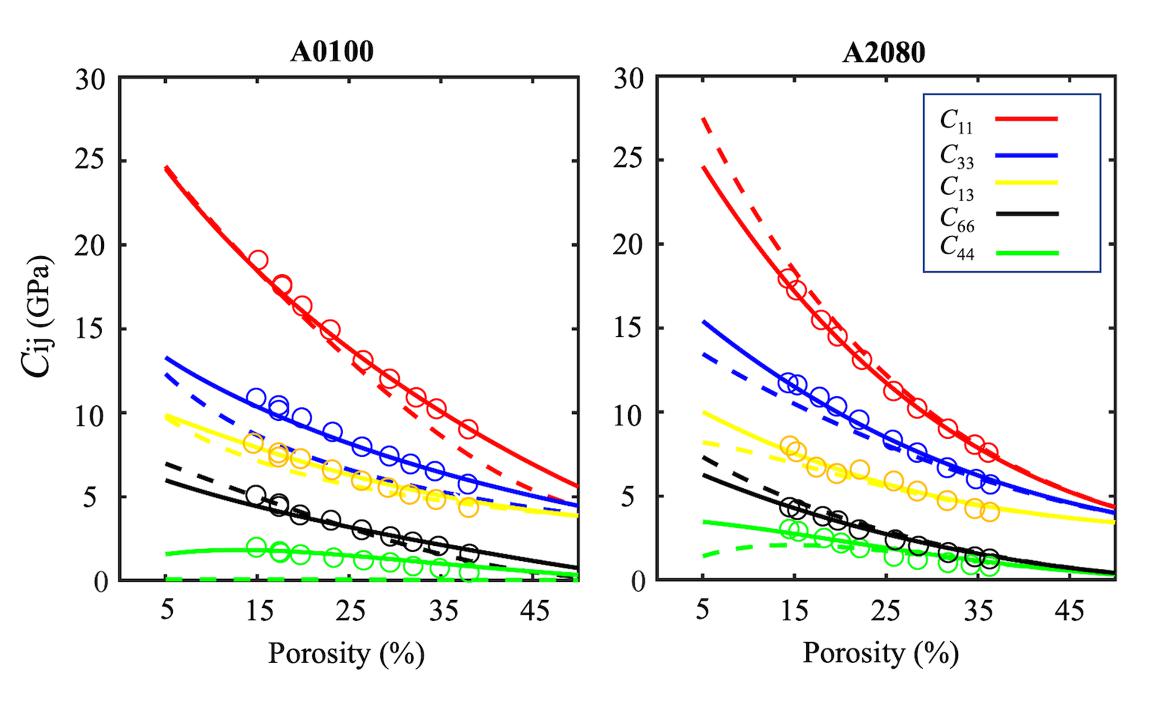 现有的方法缺乏考虑非板状颗粒对黏土板晶的影响,主要通过经验公式间接考虑,导致岩石物理模型适用性差且误差较大。为揭示黏土矿物各向异性的主要原因,利用实验数据和电子扫描观测结果,建立了考虑压实和非板状颗粒对黏土定向排列影响的理论模型。在理论分析的基础上,推导了基于压实和非板状颗粒作用的取向分布函数(ODF),该函数不仅考虑了压实的影响,还进一步考虑了石英等其他非板状颗粒的作用,使得建立的页岩各向异性岩石物理模型更加合理、准确。利用基于压实和非板状颗粒的ODF提出了改进的各向异性页岩岩石物理模型。预测结果表明,非板状颗粒的存在对黏土片晶的择优取向具有抑制作用(图2),并通过实测实验数据(图3)进行了验证,表明所提方法可靠有效。