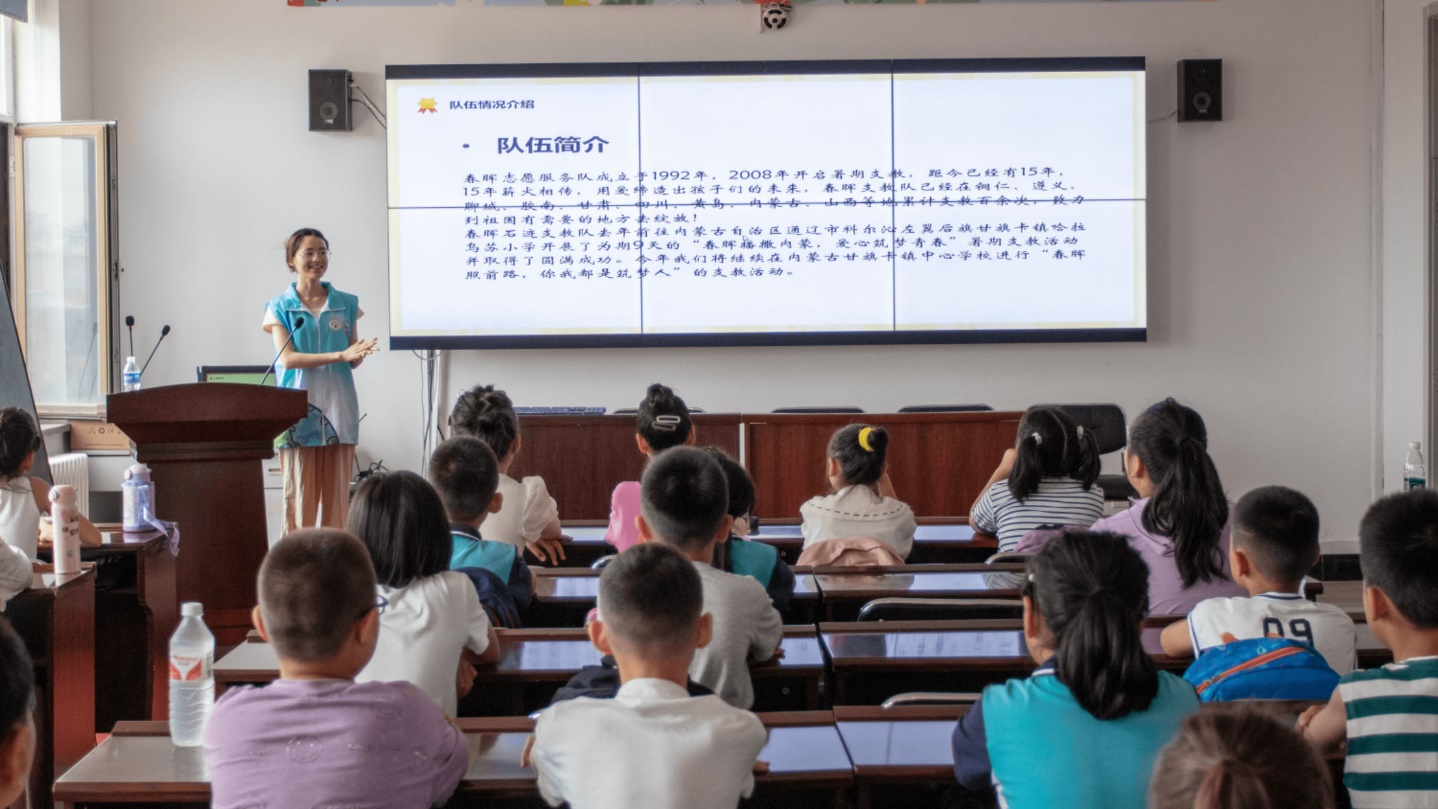 百年大计,教育为本。为响应党的二十大号召,用教育助力乡村振兴,春晖志愿服务队组建石迹支教队于7月21日抵达内蒙古科尔沁左翼后旗甘旗卡镇中心学校开展为期两周的暑期支教活动。支教期间,春晖志愿服务队将募捐的《朝花夕拾》《骆驼祥子》《西游记》《海底两万里》等2000册图书捐赠给甘旗卡镇中心学校。