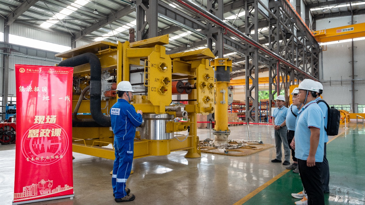 在中海油能源发展股份有限公司工程技术分公司深水钻采技术中心,现场工程师为实践团成员讲解自主研发的浅水水下采油树的工作原理。这棵中国海油设计人员用辛勤的汗水凝结成的智慧之“树”成功填补国内技术空白,是打破国外技术垄断的又一新突破。