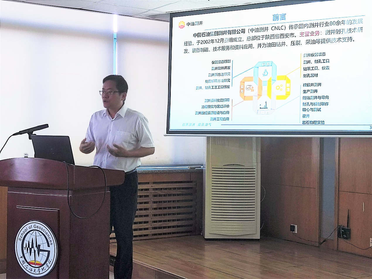 9月7日,中国石油集团测井有限公司首席专家周军受邀做客地学讲坛283讲,为学院师生作题为“测井智能化现状及展望”的学术报告,tyc7111cc太阳成集团副院长苏远大主持报告。