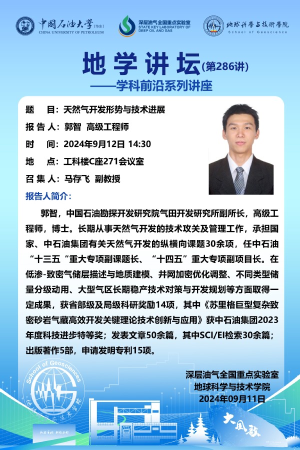【地学讲坛第286讲】关于郭智 高级工程师《天然气开发形势与技术进展》学术报告的通知