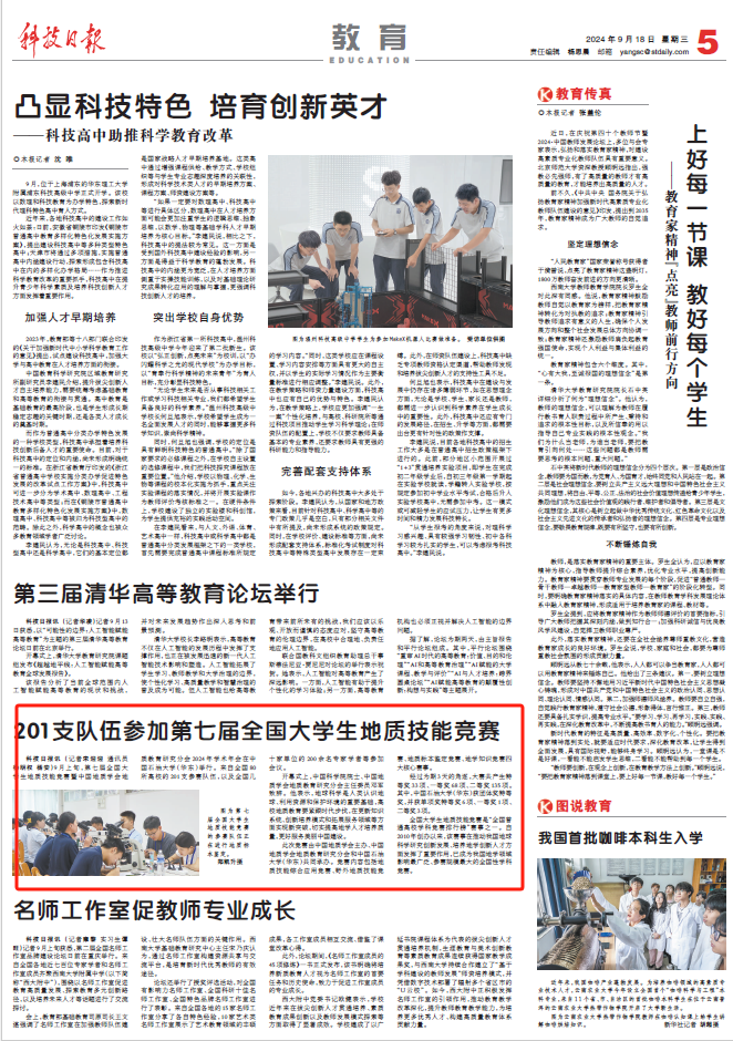 9月18日,《科技日报》以“201支队伍参加第七届全国大学生地质技能竞赛”为题,关注报道由中国地质学会主办、中国地质学会地质教育研究分会和太阳成tyc7111cc共同承办的第七届全国大学生地质技能竞赛。本届大赛的具体组织实施由我院负责,赛事结束后获得参赛师生和社会各界的广泛好评。