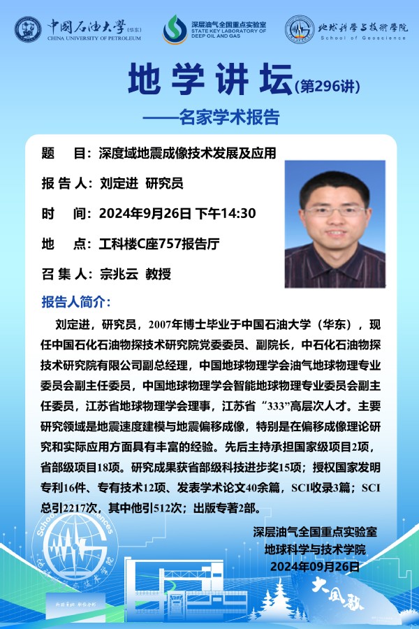 【地学讲坛第296讲】关于刘定进 研究员《深度域地震成像技术发展及应用》学术报告的通知
