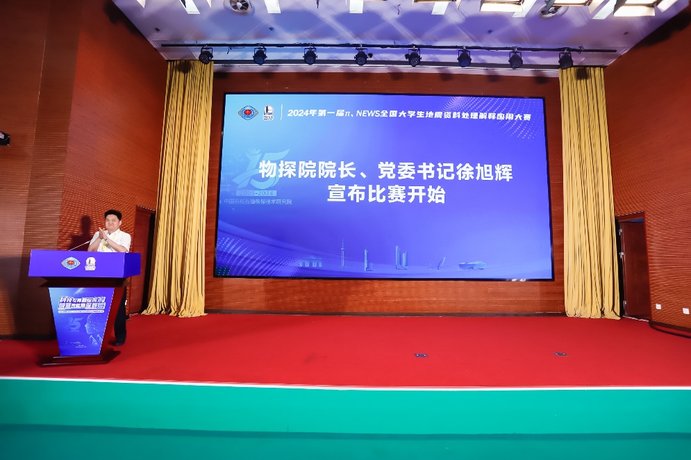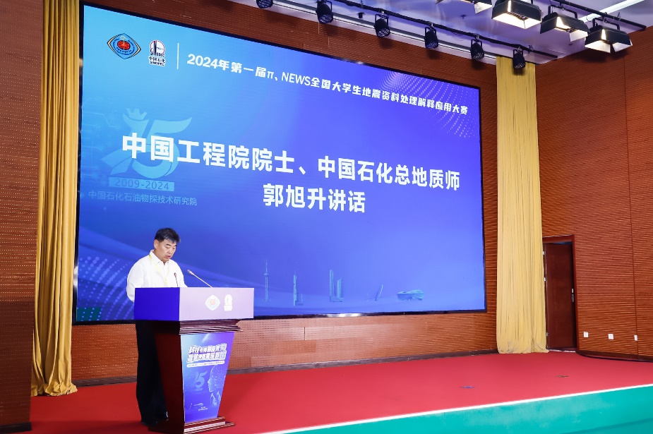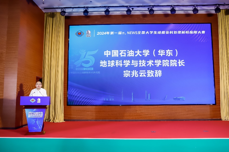 开幕式上,物探院院长、党委书记徐旭辉致开幕式欢迎辞,中国工程院院士、中国石化总地质师、石勘院院长郭旭升,中石化科技部副总经理关晓东,中国地球物理学会副理事长、秘书长郭建,中国石油大学(华东)tyc7111cc太阳成集团院长宗兆云等分别致辞。郭旭升院士在讲话时指出,“物探院打造了π和NEWS两大拳头产品,已经初步具备工业化应用能力,而且在一些特色功能上已能与商业软件媲美,甚至效果更好。中石化关注并致力于产学研用的深度融合,支持并不断搭建交流合作平台,推动企业科技创新与高校人才培养双向进步,促进国产自主研发软件的推广与应用”。宗兆云院长致大赛开幕辞时指出,“学科竞赛一直是促进高校教学、展示人才培养效果的有效手段。希望通过本次大赛,进一步加强与企业之间、与各高校之间的交流与合作,共同推动新时代勘探类人才培养,为国家油气勘探事业发展提供有力的人才支撑。”