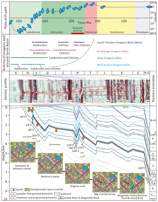 流体不仅是流体-岩石作用的参与组分,还是流体-岩石作用中物质、能量和动量的传输载体,储层中成岩流体的来源、性质、流动方式、流动方向及分布特征决定了流体-岩石作用类型、强度、成岩产物分布规律和储层物性响应。超深层储层在复杂的埋藏演化过程中经历了多类型流体的侵位和流体-岩石改造作用,导致现今储层具有强非均质性特征。因此,重塑超深层储层埋藏过程中地质流体演化过程,揭示不同类型流体的成储效应,对于认识超深层优质储层成因具有重要意义。