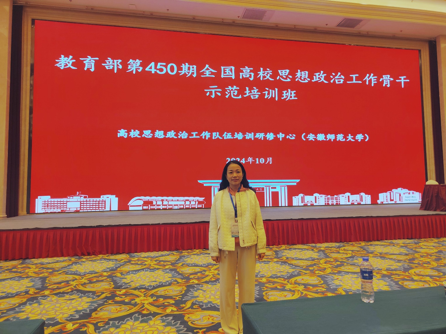 10月22日至25日,由教育部思想政治工作司主办、高校思想政治工作队伍培训研修中心(安徽师范大学)承办的第450期全国高校思想政治工作骨干示范班在芜湖举行。共有来自全国110所高校的113名思想政治工作骨干参与。我院杨建敏参加培训并顺利结业。