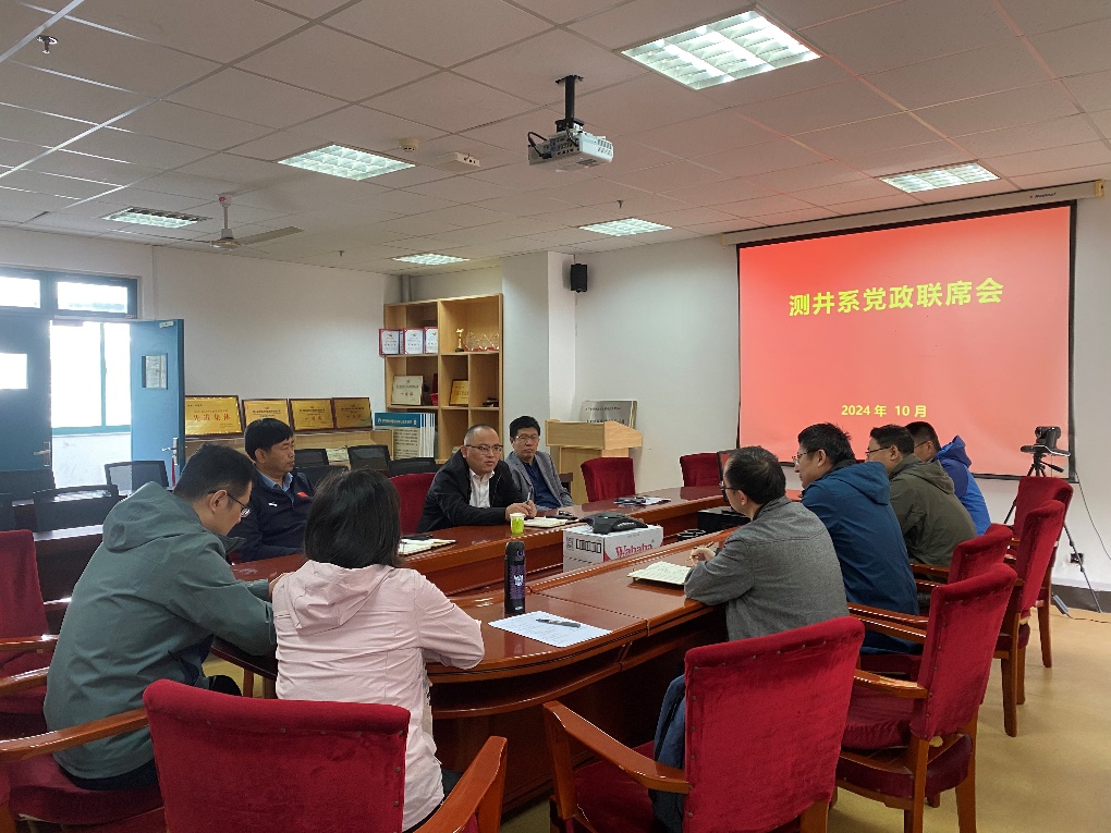 10月25日,测井系在工科楼C375召开了党政联席会议,共同研讨近期的工作重点、难点及攻关方向。系主任张锋主持会议,学院党委书记牛庆玮、院长宗兆云和副院长苏远大出席会议,系党政领导班子全员参加。