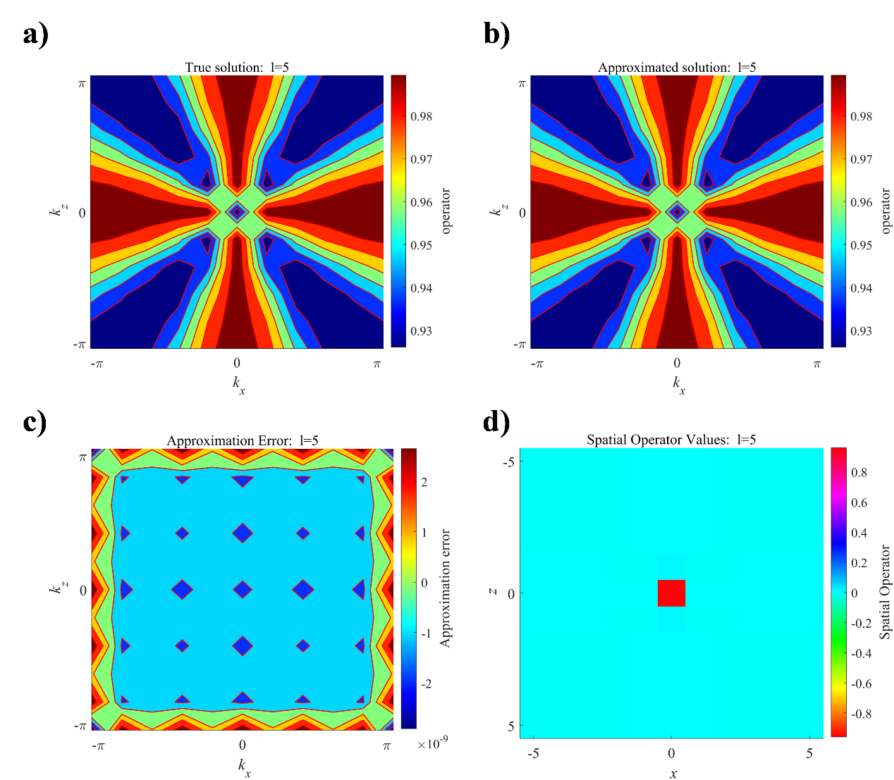 为解决该问题,本文提出了一种基于空间域伪差分算子的VTI介质纯qP波正演模拟方法。该方法首先将纯qP波方程化为含有修正伪差分算子的椭圆各向异性方程;而后基于非线性优化算法对所有修正伪差分算子进行近似,计算得到空间域伪差分算子(图1)。接着在非椭圆各向异性区域,用该算子对应力进行修正。最后基于修正后的应力,直接使用交错网格有限差分对椭圆各向异性方程进行求解。本研究提出的方法可以对qP波进行高精度模拟,避免横波假象的产生,且不会产生不稳定现象(图2),具有较好的实际应用前景。
