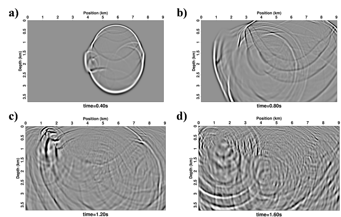 图2.使用本方法在HESS模型模拟的纯qP波波场快照。