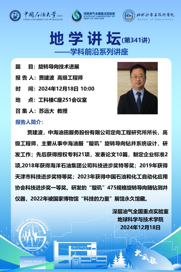 【地学讲坛第341讲】关于 贾建波 高级工程师《旋转导向技术进展》学术报告的通知