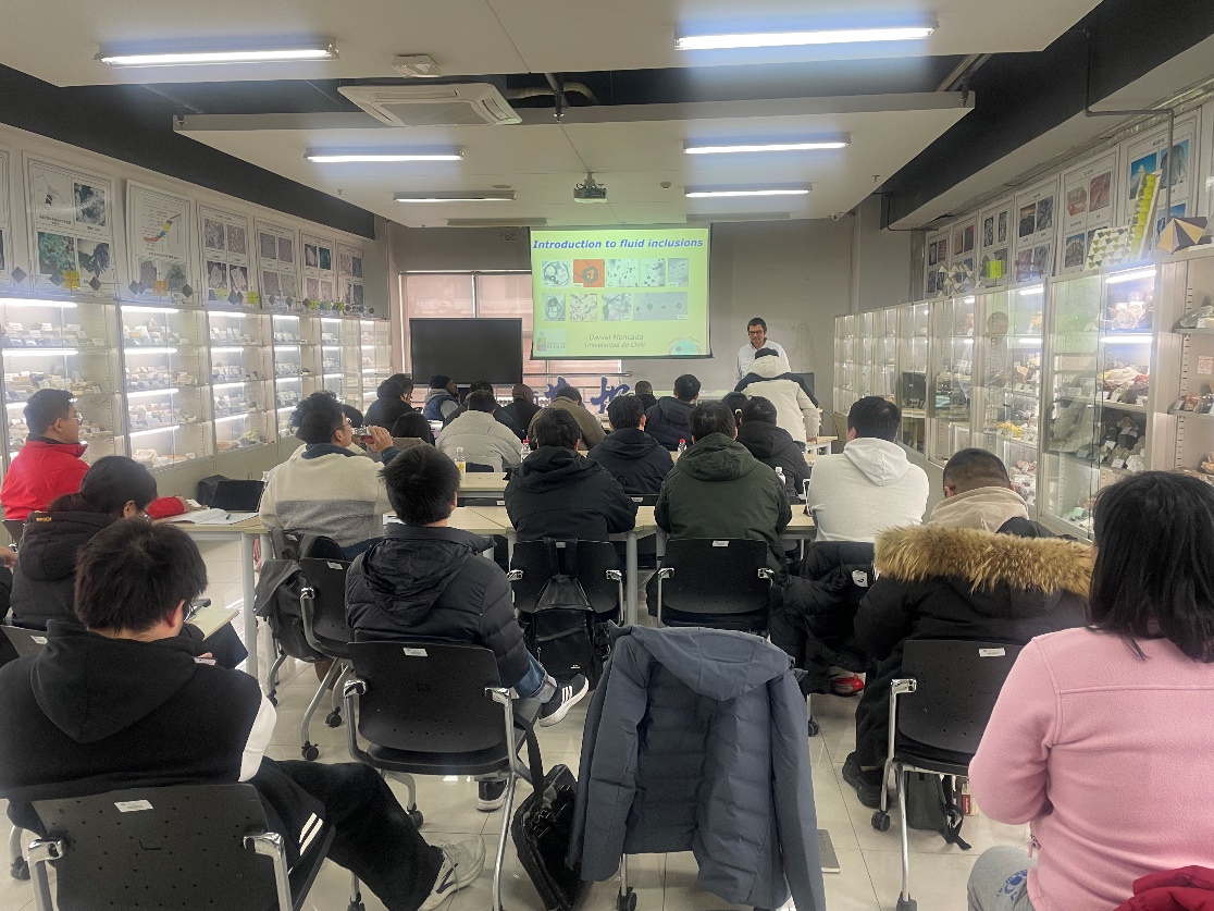 2024年12月19日至2024年12月22日,学院GeoFriday第93期讲座于工科楼C地质博物馆成功举行。王淼特任副教授邀请来自智利大学的Daniel Moncada博士为我院研究生讲授了《Introduction to fluid inclusions in ore-forming and hydrocarbon systems》的短期课程。学院师生五十余人参加本次交流。