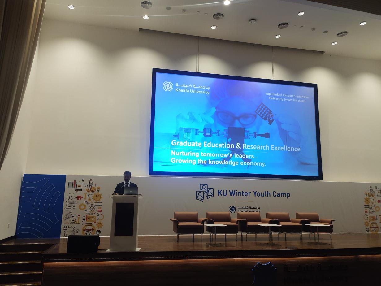 世界能源未来发展前景怎样?人工智能是福是祸?人类如何健康长寿?面对当前科学的三大主题,1月13日,由哈利法大学主办的2025青年冬令营项目在阿布扎比主校区正式开营。来自我校和清华大学、浙江大学、四川大学、西安交通大学等10所高校170名师生参加本次冬令营,我院“能源报国行”实践团师生一行13人参会。