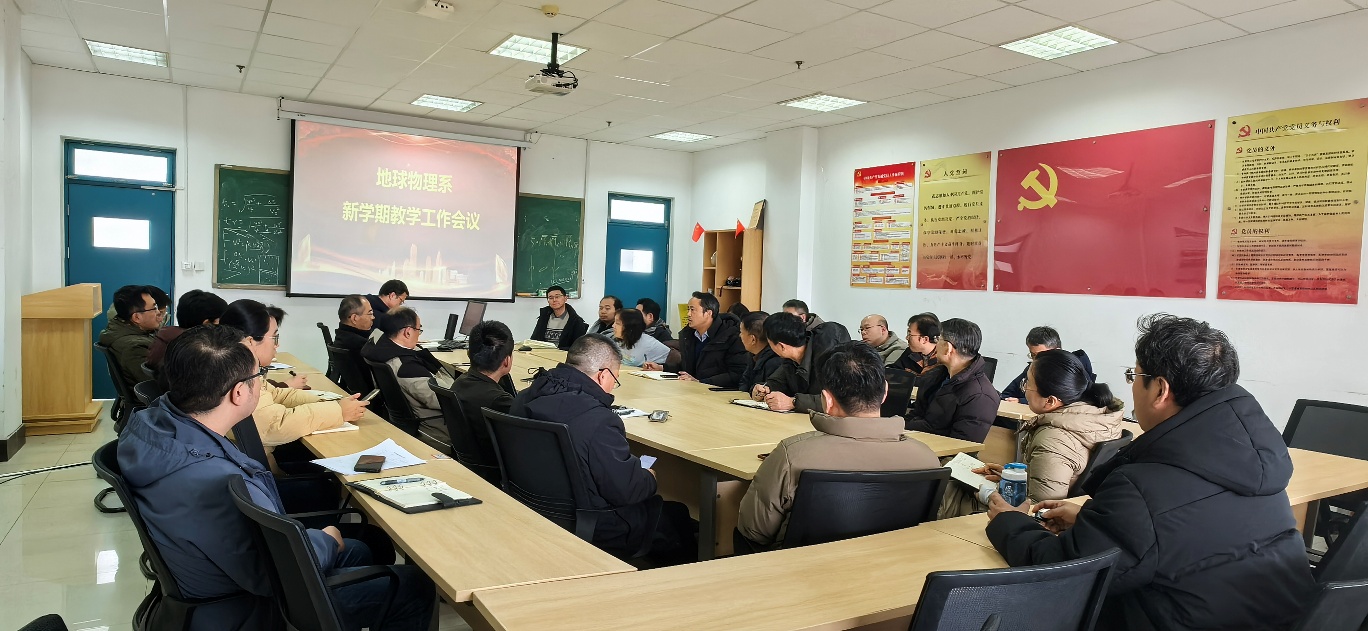 2025年2月21日,地球物理系在C371会议室召开了新学期工作会议。旨在总结过去一年的工作成果,规划新学期的支部建设、教学科研、学生培养和实验室建设等工作,确保各项工作有序开展。会议由地球物理系党支部书记张凯主持,全系在校教师参加会议。