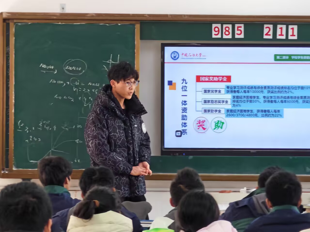 “高中坐在台下听学长宣讲的我,从未想过今天能以资助受益者的身份站在这里。”地质2201班于安祺回到高中母校山东省招远第一中学,以“奖学金背后的成长密码”为切入点,通过视频、图片和实物展示,“云游”太阳成tyc7111cc校园。