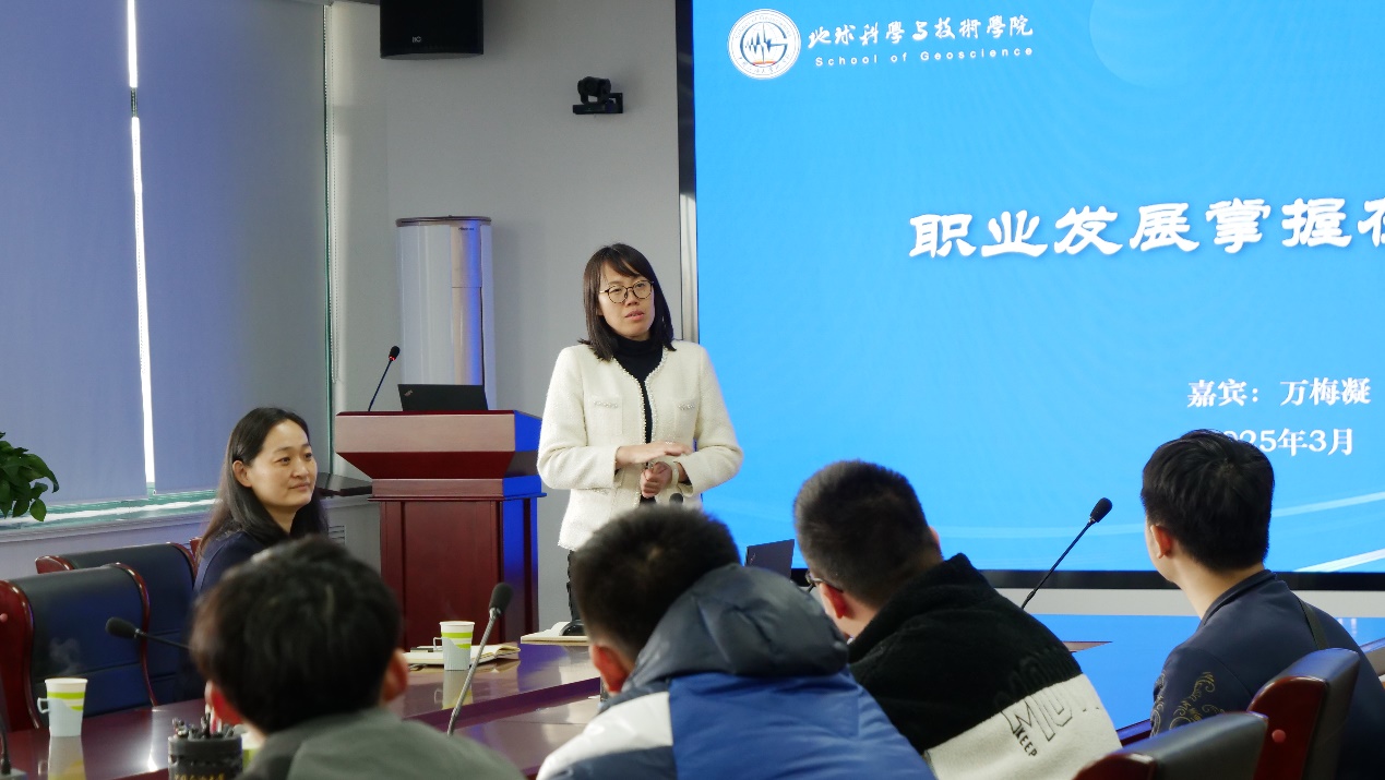 3月13日下午,学院“经纬论坛·青年问道”活动在工科C271会议室举行。中海艾普油气测试(天津)有限公司行政人事部人力资源经理万梅凝以“职业发展掌握在自己手里”为主题,为现场四十余名师生带来行业洞见与求职实战指导。活动由学院党委副书记郑珊珊主持,毕业生辅导员共同参与。