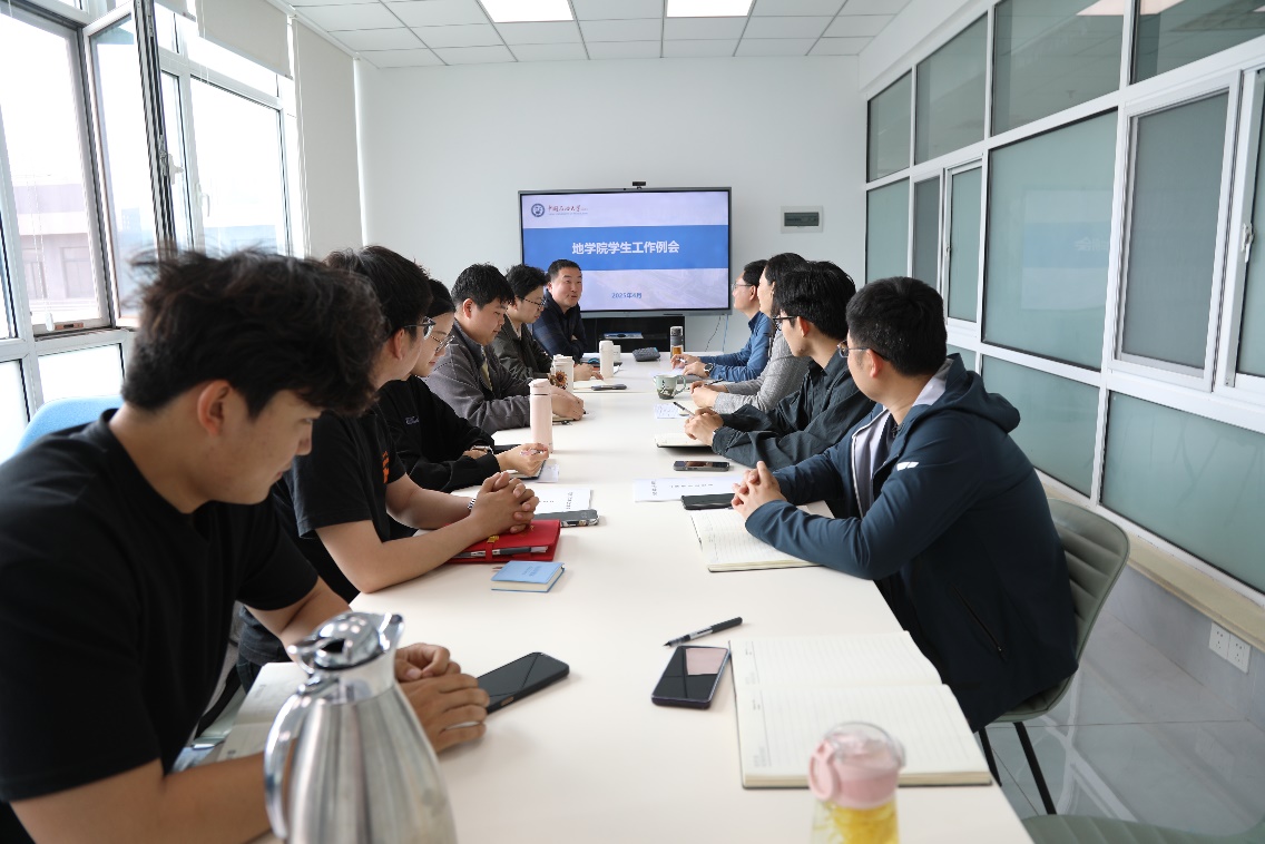 各年级辅导员汇报进宿舍、进课堂等学生管理工作基本情况以及特殊学生群体关心关爱情况,针对疑难问题群策群力研讨解决方案,制定下一步工作计划。大家结合近五年工作总结,深入研讨学院育人体系,进一步优化了以“123+N工作思路”为顶层设计,以四项工程为实践载体,以培育新时代油气地学拔尖人才为目标的工作体系。姜永昶反馈各年级学生宿舍卫生优良率情况,传达学校关于学生管理的最新要求。英飞汇报一对一学业困难学生帮扶计划的推进情况,发放课堂督查情况记录册,进一步强化课堂督查机制。栗磊、任金恒汇报了学院2025届学生就业率,并集体讨论就业困难学生帮扶工作。