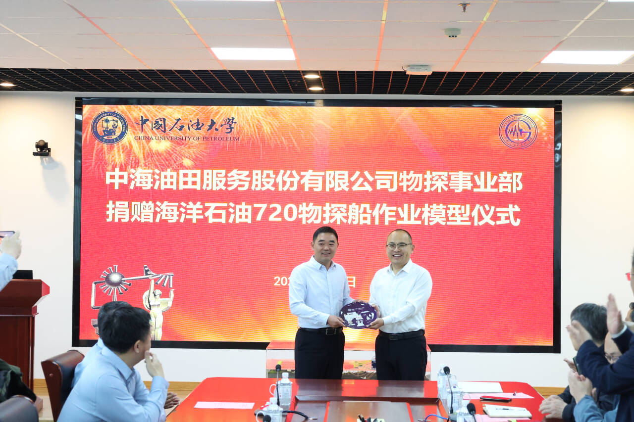 为进一步深化校企合作,推动科技创新与人才培养协同发展, 5月9日上午,中海油田服务股份有限公司(以下简称“中海油服”)来院交流并举行海洋石油720物探船作业模型捐赠仪式。