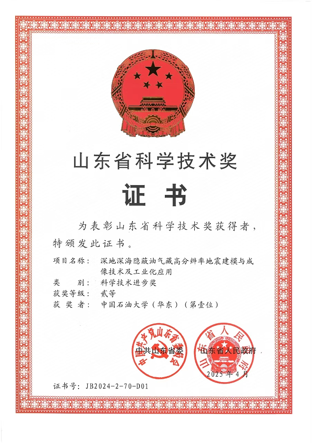 6月27日,全省科技大会在济南召开,表彰2024年度山东省科学技术奖获奖者。我院王民老师为首位完成人的科研项目《页岩纳米孔隙形成与油气赋存机理》获得自然科学二等奖,曲英铭老师为首位完成人的科研项目《深地深海隐蔽油气藏高分辨率地震建模与成像技术及工业化应用》获得科技进步二等奖。