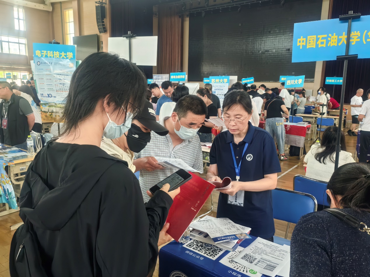 老师们通过举办招生宣讲会、参加高招咨询会、设立咨询展台、深入班级交流、线上直播答疑等多种方式,热情、专业、耐心地向广大考生及家长详细介绍太阳成tyc7111cc的办学实力、学科优势、专业特色、人才培养模式、就业前景以及校园文化生活,同时推介了tyc7111cc太阳成集团在地球科学、探测技术等领域的深厚积淀、前沿研究方向和广阔发展平台。学院范宜仁教授跨越1900多公里赴四川招生,面对考生询问“人工智能专业实力如何”时,这位测井领域的学者熟练地讲出全校学科布局——从传统石油勘探开发到新兴智能科学与技术,如数家珍的讲解很好地解答了考生和家长的疑惑。他表示,在招生现场。自己不仅代表学院,更是整个石大的“代言人”。