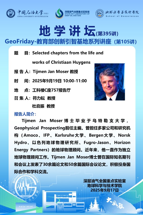 【地学讲坛第395讲】关于Tijmen Jan Moser 教授《Selected chapters from the life and works of Christiaan Huygens》学术报告的通知