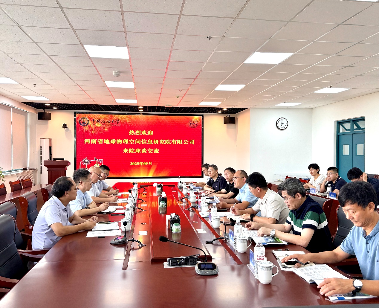 9月16日,河南省地球物理空间信息研究院有限公司(以下简称 “河南地物空间信息研究院”) 党委书记、董事长韩红太一行来我院座谈交流。双方围绕技术研发合作、人才联合培养、科研成果转化等议题深入探讨,为后续校企协同创新、共促行业发展奠定坚实基础。学院院长宗兆云,副院长孟凡超,地球物理系、资源系、地质系负责人和相关教师参加座谈会。